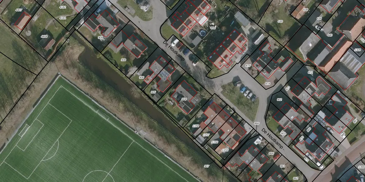 Het perceel waarop De Houtkamp 17 staat heeft een oppervlakte van 478 m². Dit is een groot perceel. De perceeloppervlakte wordt geregistreerd door het Kadaster. Gedetailleerde informatie over de maten van dit perceel kunt u vinden in het rapport Kadastrale kaart met maatvoering van De Houtkamp 17.