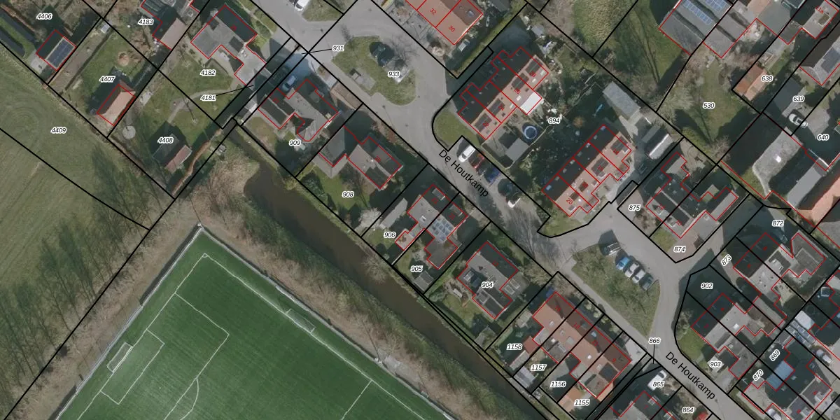 Het perceel waarop De Houtkamp 23 staat heeft een oppervlakte van 245 m². Dit is een middelgroot perceel. De perceeloppervlakte wordt geregistreerd door het Kadaster. Gedetailleerde informatie over de maten van dit perceel kunt u vinden in het rapport Kadastrale kaart met maatvoering van De Houtkamp 23.