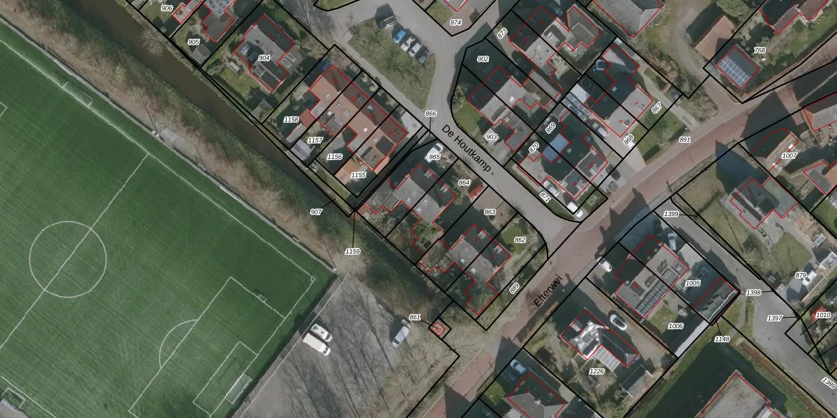 Het perceel waarop De Houtkamp 5 staat heeft een oppervlakte van 250 m². Dit is een middelgroot perceel. De perceeloppervlakte wordt geregistreerd door het Kadaster. Gedetailleerde informatie over de maten van dit perceel kunt u vinden in het rapport Kadastrale kaart met maatvoering van De Houtkamp 5.