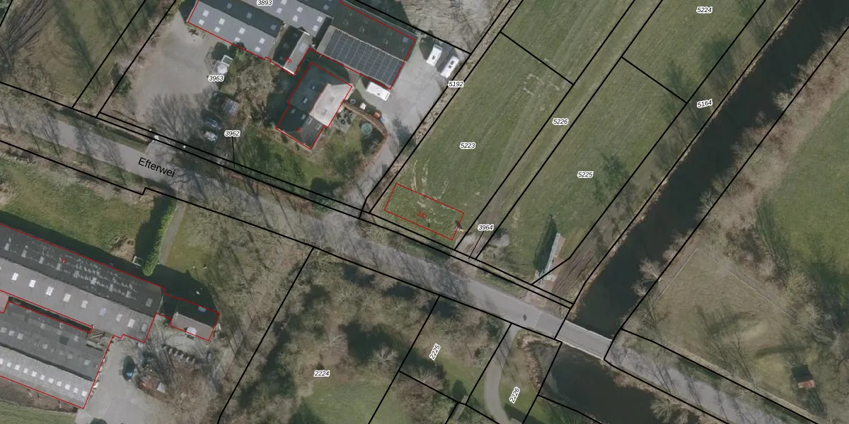 Efterwei 20-D is gelegen op kadastraal perceel RTV00B5223. Deze kadastrale aanduiding is uniek en wordt gebruikt door het Kadaster om eigendomsrechten en andere zakelijke rechten vast te leggen. Het perceel maakt onderdeel uit van de kadastrale gemeente Rottevalle.