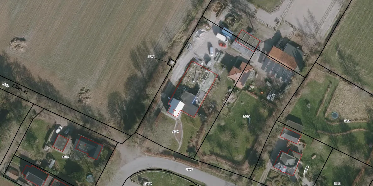 Het perceel waarop Efterwei 34 staat heeft een oppervlakte van 2370 m². Dit is een zeer groot perceel. De perceeloppervlakte wordt geregistreerd door het Kadaster. Gedetailleerde informatie over de maten van dit perceel kunt u vinden in het rapport Kadastrale kaart met maatvoering van Efterwei 34.