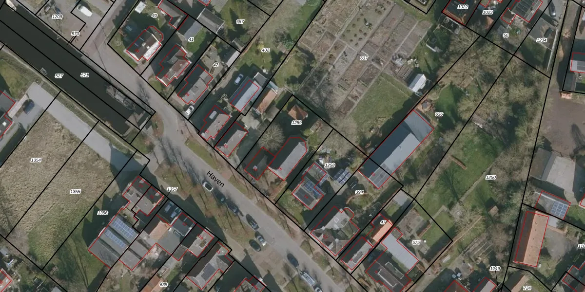Het perceel waarop Haven 16 staat heeft een oppervlakte van 587 m². Dit is een groot perceel. De perceeloppervlakte wordt geregistreerd door het Kadaster. Gedetailleerde informatie over de maten van dit perceel kunt u vinden in het rapport Kadastrale kaart met maatvoering van Haven 16.