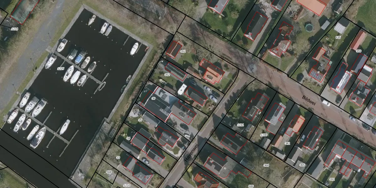 Het perceel waarop Havenwei 13 staat heeft een oppervlakte van 552 m². Dit is een groot perceel. De perceeloppervlakte wordt geregistreerd door het Kadaster. Gedetailleerde informatie over de maten van dit perceel kunt u vinden in het rapport Kadastrale kaart met maatvoering van Havenwei 13.