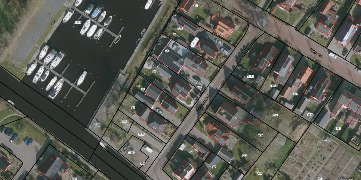 Het perceel waarop Havenwei 7 staat heeft een oppervlakte van 434 m². Dit is een groot perceel. De perceeloppervlakte wordt geregistreerd door het Kadaster. Gedetailleerde informatie over de maten van dit perceel kunt u vinden in het rapport Kadastrale kaart met maatvoering van Havenwei 7.