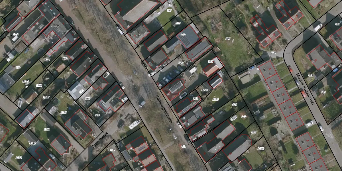 Het perceel waarop Kompagnonswei 13 staat heeft een oppervlakte van 480 m². Dit is een groot perceel. De perceeloppervlakte wordt geregistreerd door het Kadaster. Gedetailleerde informatie over de maten van dit perceel kunt u vinden in het rapport Kadastrale kaart met maatvoering van Kompagnonswei 13.