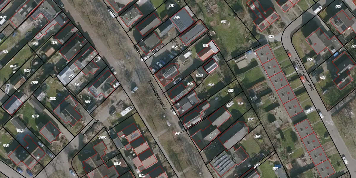 Kompagnonswei 15 is gelegen op kadastraal perceel RTV00D322. Deze kadastrale aanduiding is uniek en wordt gebruikt door het Kadaster om eigendomsrechten en andere zakelijke rechten vast te leggen. Het perceel maakt onderdeel uit van de kadastrale gemeente Rottevalle.