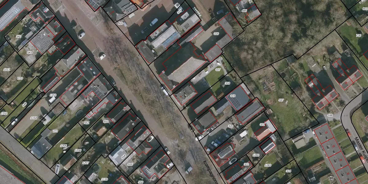 Het perceel waarop Kompagnonswei 3 staat heeft een oppervlakte van 350 m². Dit is een groot perceel. De perceeloppervlakte wordt geregistreerd door het Kadaster. Gedetailleerde informatie over de maten van dit perceel kunt u vinden in het rapport Kadastrale kaart met maatvoering van Kompagnonswei 3.