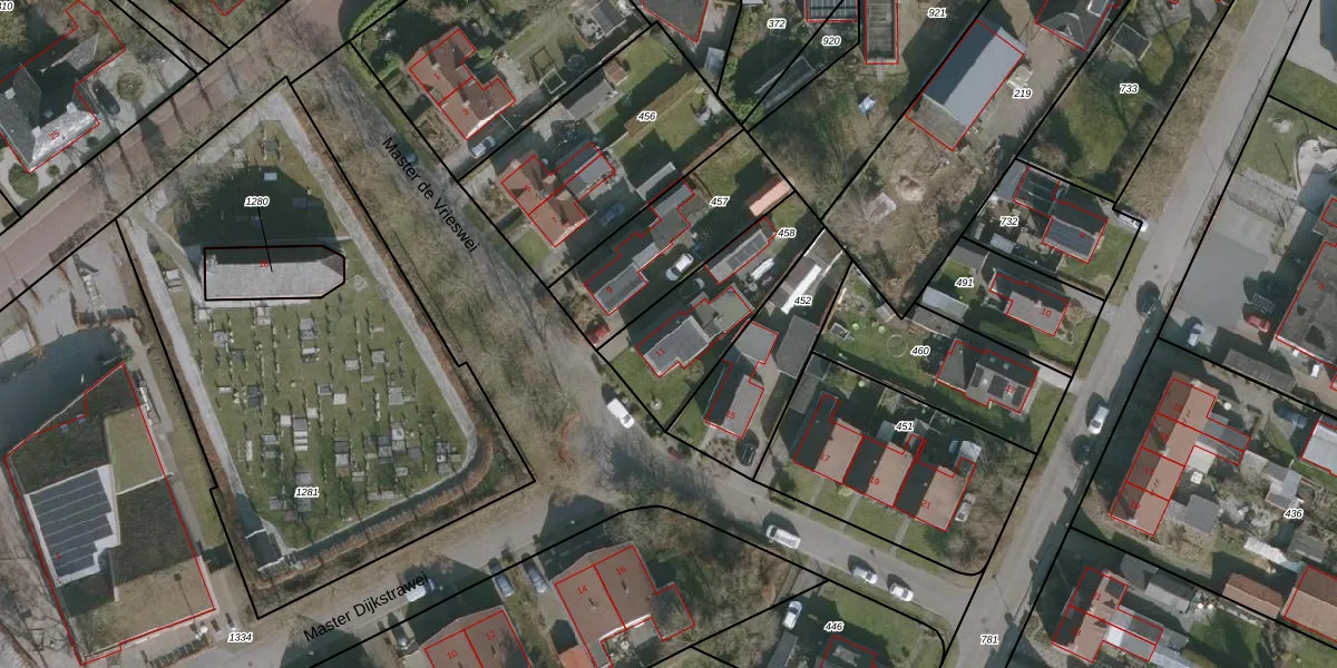 Het perceel waarop Master de Vrieswei 11 staat heeft een oppervlakte van 448 m². Dit is een groot perceel. De perceeloppervlakte wordt geregistreerd door het Kadaster. Gedetailleerde informatie over de maten van dit perceel kunt u vinden in het rapport Kadastrale kaart met maatvoering van Master de Vrieswei 11.