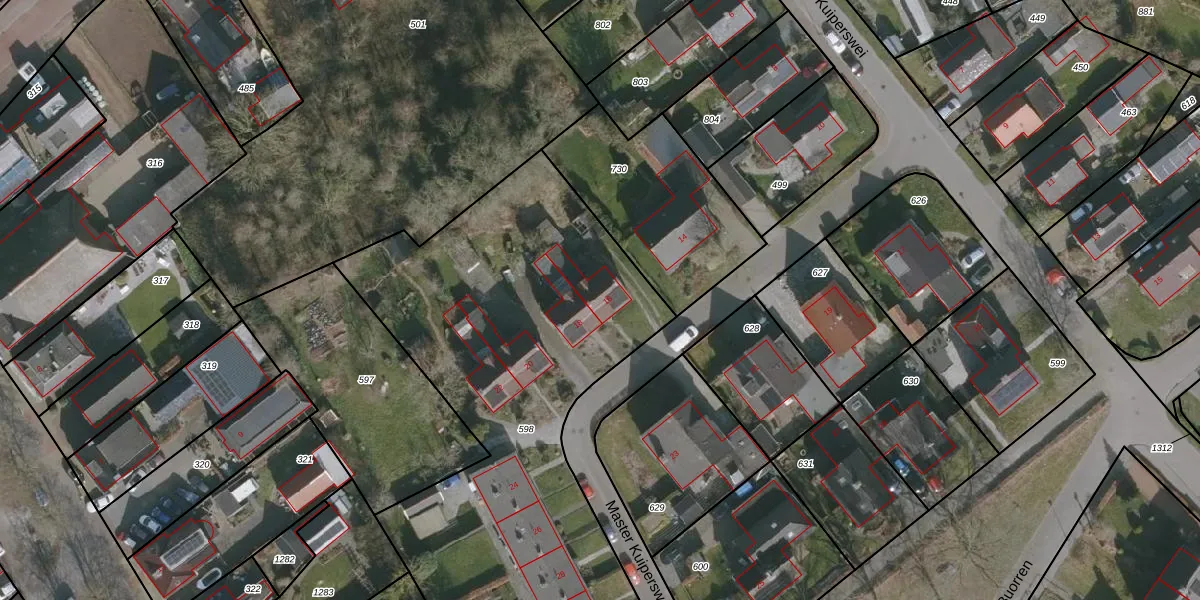 Het perceel waarop Master Kuiperswei 16 staat heeft een oppervlakte van 4180 m². Dit is een zeer groot perceel. De perceeloppervlakte wordt geregistreerd door het Kadaster. Gedetailleerde informatie over de maten van dit perceel kunt u vinden in het rapport Kadastrale kaart met maatvoering van Master Kuiperswei 16.
