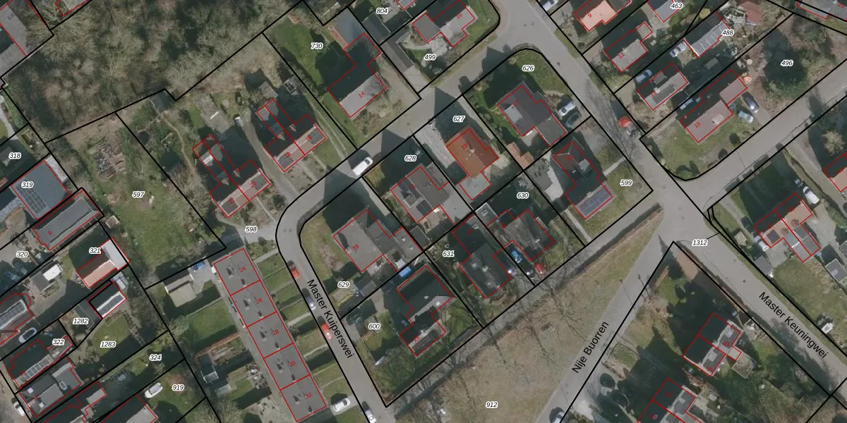 Master Kuiperswei 21 is gelegen op kadastraal perceel RTV00D628. Deze kadastrale aanduiding is uniek en wordt gebruikt door het Kadaster om eigendomsrechten en andere zakelijke rechten vast te leggen. Het perceel maakt onderdeel uit van de kadastrale gemeente Rottevalle.