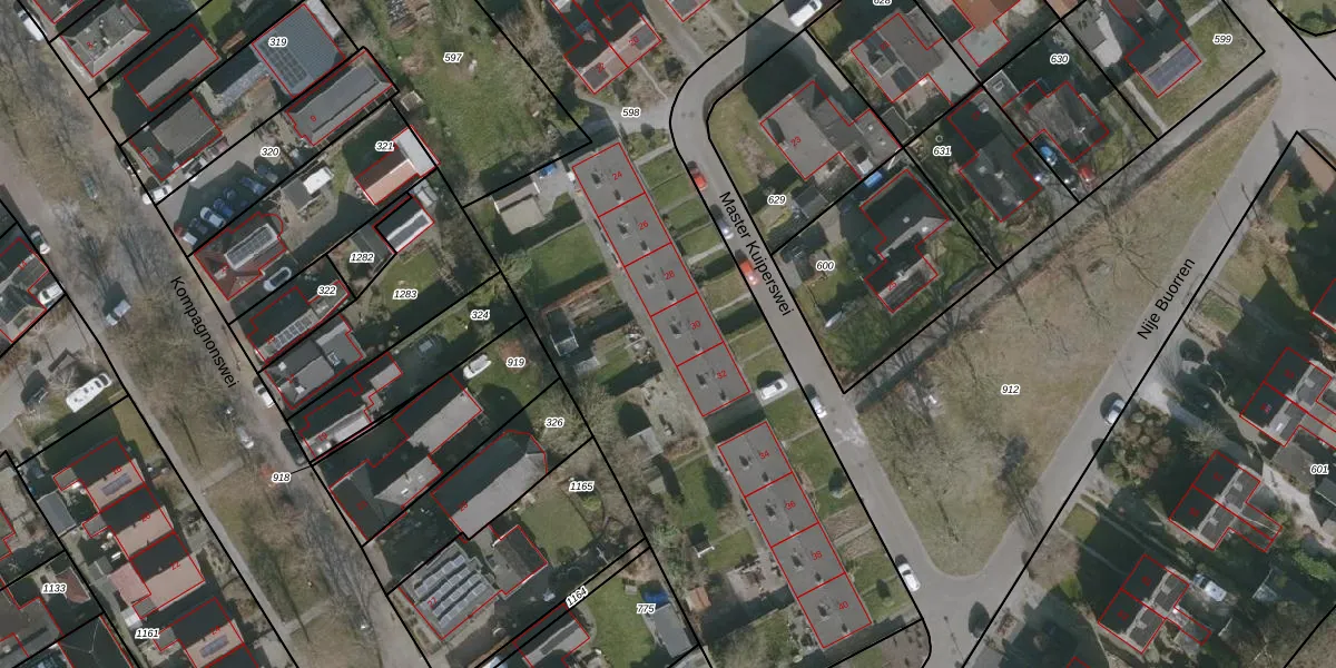 Master Kuiperswei 30 is gelegen op kadastraal perceel RTV00D598. Deze kadastrale aanduiding is uniek en wordt gebruikt door het Kadaster om eigendomsrechten en andere zakelijke rechten vast te leggen. Het perceel maakt onderdeel uit van de kadastrale gemeente Rottevalle.