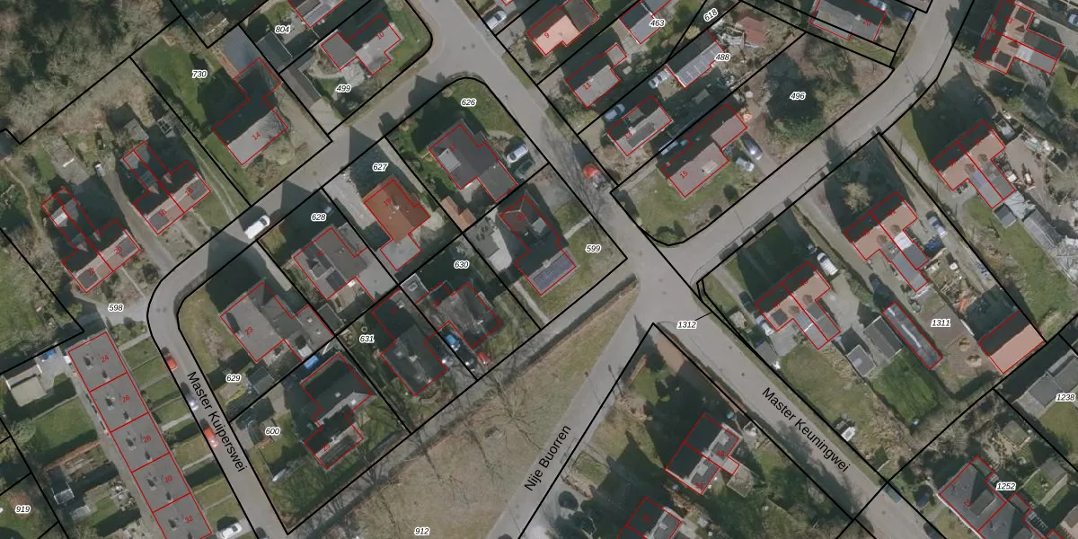 Master Kuiperswei 31 is gelegen op kadastraal perceel RTV00D599. Deze kadastrale aanduiding is uniek en wordt gebruikt door het Kadaster om eigendomsrechten en andere zakelijke rechten vast te leggen. Het perceel maakt onderdeel uit van de kadastrale gemeente Rottevalle.