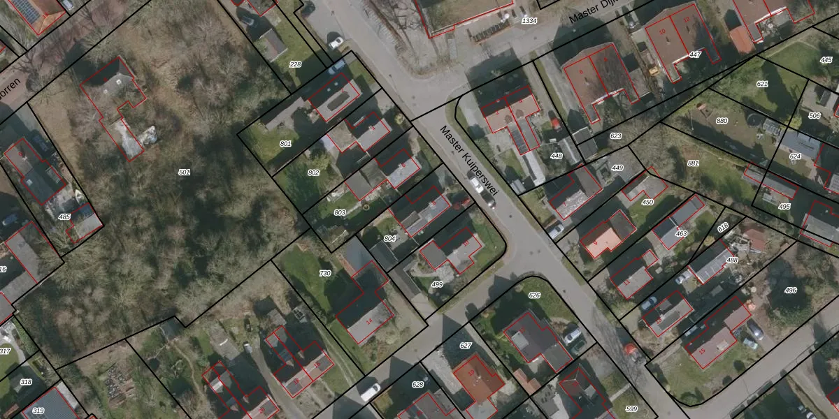 Gebruik de zoekbalk of klik op een perceel voor informatie over de adressen binnen dit perceel.