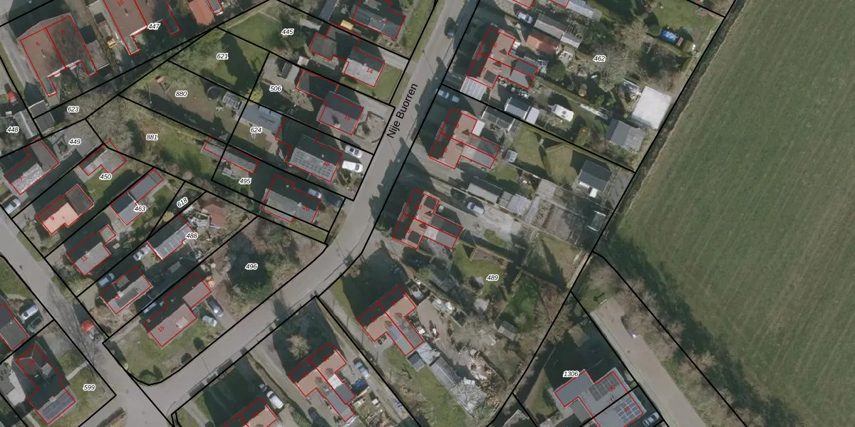 Het perceel waarop Nije Buorren 33 staat heeft een oppervlakte van 3390 m². Dit is een zeer groot perceel. De perceeloppervlakte wordt geregistreerd door het Kadaster. Gedetailleerde informatie over de maten van dit perceel kunt u vinden in het rapport Kadastrale kaart met maatvoering van Nije Buorren 33.