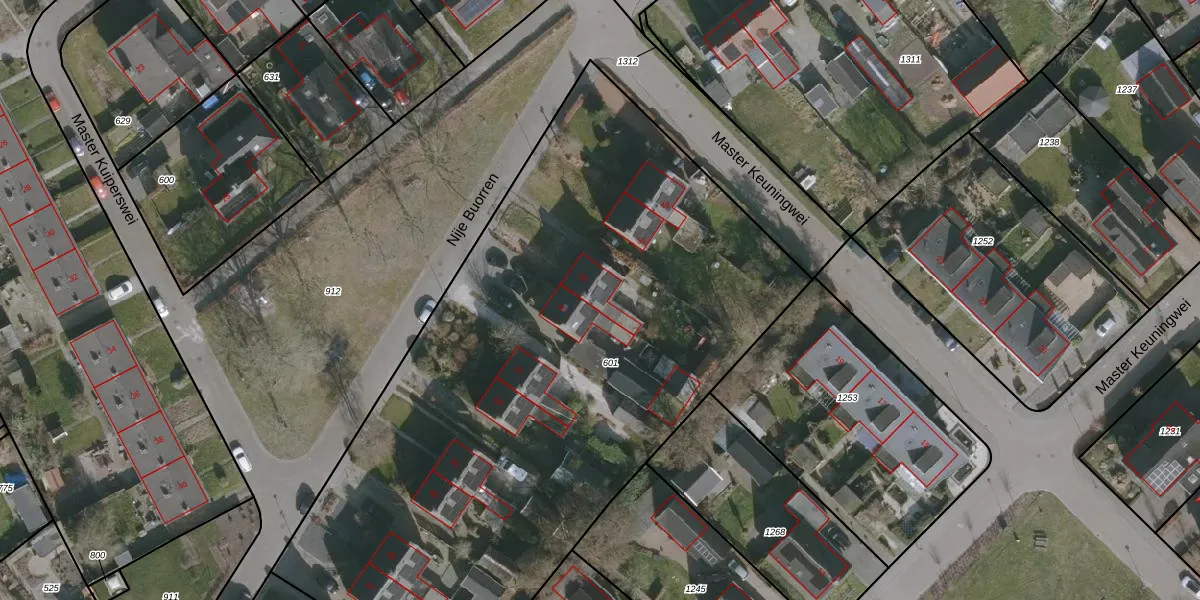 Het perceel waarop Nije Buorren 53 staat heeft een oppervlakte van 4155 m². Dit is een zeer groot perceel. De perceeloppervlakte wordt geregistreerd door het Kadaster. Gedetailleerde informatie over de maten van dit perceel kunt u vinden in het rapport Kadastrale kaart met maatvoering van Nije Buorren 53.