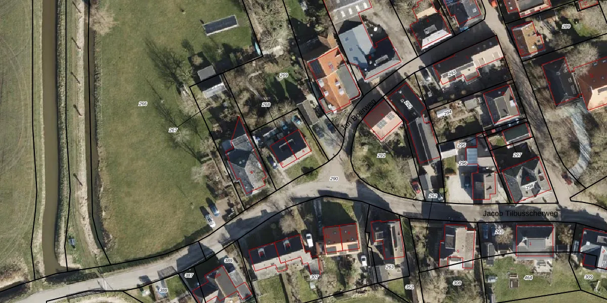 Het perceel waarop Jacob Tilbusscherweg 4 staat heeft een oppervlakte van 395 m². Dit is een groot perceel. De perceeloppervlakte wordt geregistreerd door het Kadaster. Gedetailleerde informatie over de maten van dit perceel kunt u vinden in het rapport Kadastrale kaart met maatvoering van Jacob Tilbusscherweg 4.
