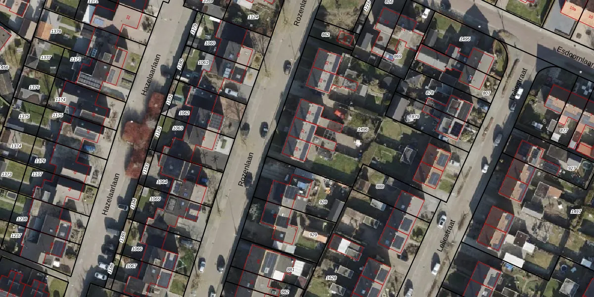 Het perceel waarop Rozenlaan 39 staat heeft een oppervlakte van 1904 m². Dit is een zeer groot perceel. De perceeloppervlakte wordt geregistreerd door het Kadaster. Gedetailleerde informatie over de maten van dit perceel kunt u vinden in het rapport Kadastrale kaart met maatvoering van Rozenlaan 39.