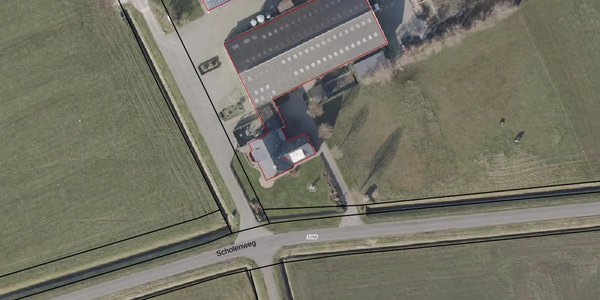 Het perceel waarop Scholenweg 9 staat heeft een oppervlakte van 10,4 ha. Dit is een zeer groot perceel. De perceeloppervlakte wordt geregistreerd door het Kadaster. Gedetailleerde informatie over de maten van dit perceel kunt u vinden in het rapport Kadastrale kaart met maatvoering van Scholenweg 9.