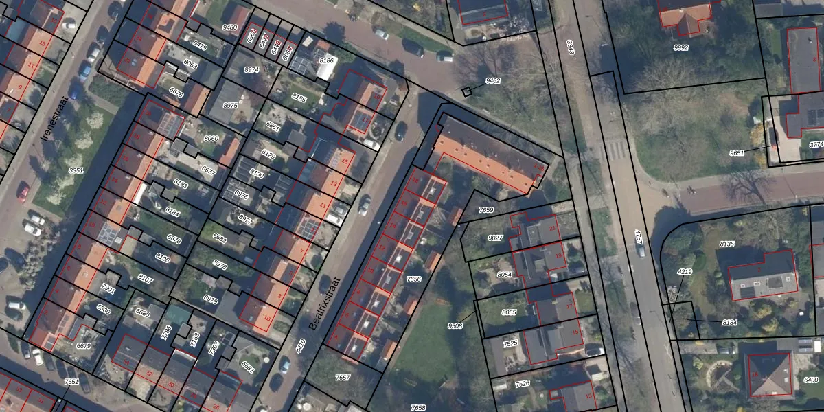 Beatrixstraat 16 is gelegen op kadastraal perceel RZB00B7656. Deze kadastrale aanduiding is uniek en wordt gebruikt door het Kadaster om eigendomsrechten en andere zakelijke rechten vast te leggen. Het perceel maakt onderdeel uit van de kadastrale gemeente Rozenburg.