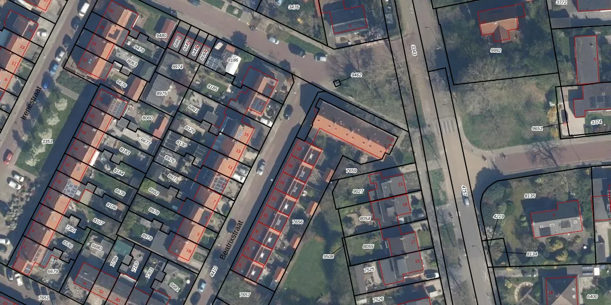 Beatrixstraat 18 is gelegen op kadastraal perceel RZB00B7656. Deze kadastrale aanduiding is uniek en wordt gebruikt door het Kadaster om eigendomsrechten en andere zakelijke rechten vast te leggen. Het perceel maakt onderdeel uit van de kadastrale gemeente Rozenburg.