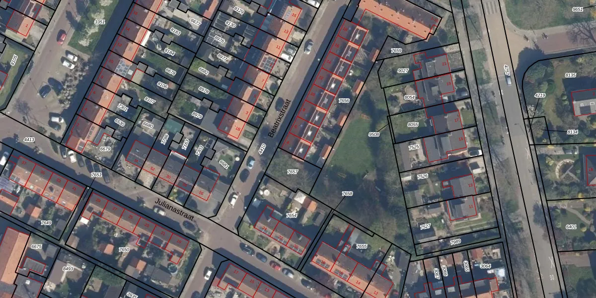Beatrixstraat 4 is gelegen op kadastraal perceel RZB00B7656. Deze kadastrale aanduiding is uniek en wordt gebruikt door het Kadaster om eigendomsrechten en andere zakelijke rechten vast te leggen. Het perceel maakt onderdeel uit van de kadastrale gemeente Rozenburg.
