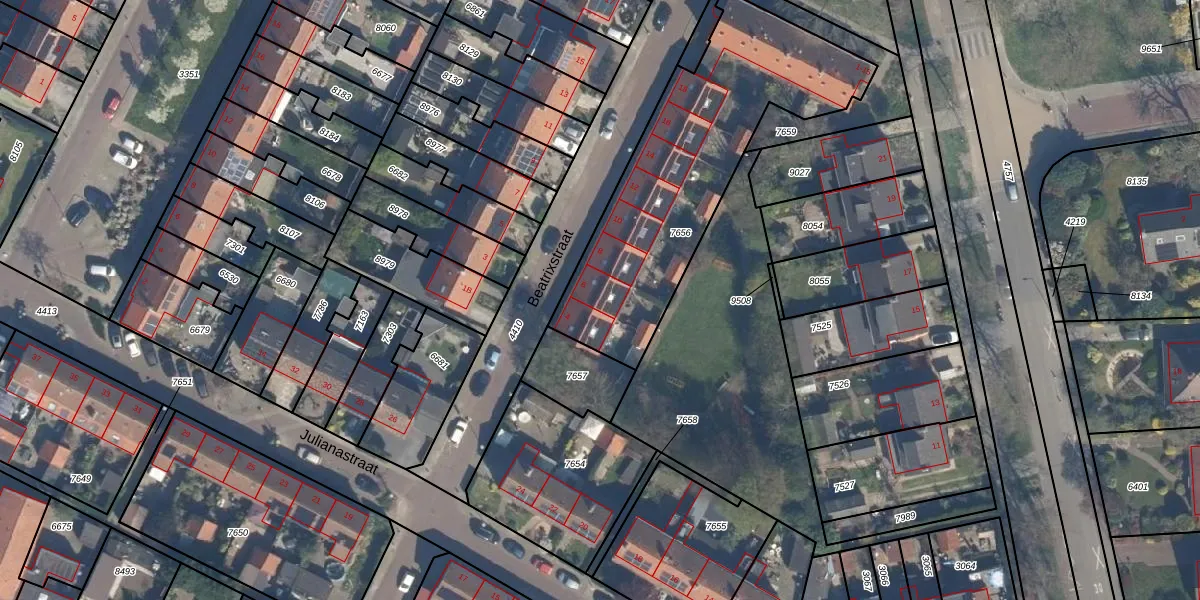 Beatrixstraat 6 is gelegen op kadastraal perceel RZB00B7656. Deze kadastrale aanduiding is uniek en wordt gebruikt door het Kadaster om eigendomsrechten en andere zakelijke rechten vast te leggen. Het perceel maakt onderdeel uit van de kadastrale gemeente Rozenburg.