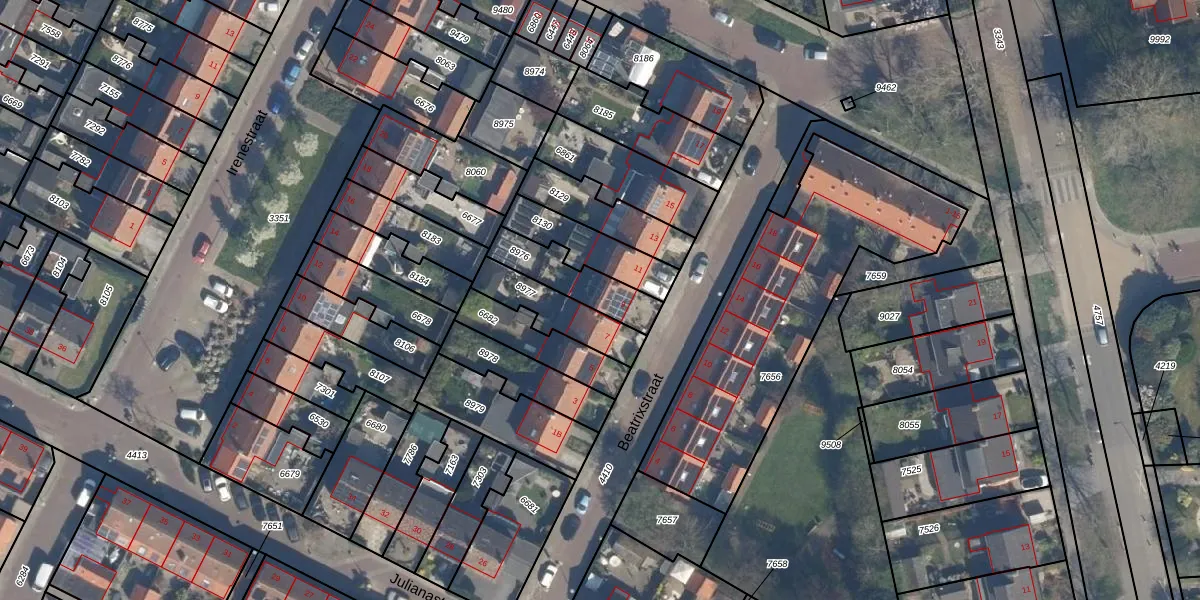 Beatrixstraat 9 is gelegen op kadastraal perceel RZB00B8976. Deze kadastrale aanduiding is uniek en wordt gebruikt door het Kadaster om eigendomsrechten en andere zakelijke rechten vast te leggen. Het perceel maakt onderdeel uit van de kadastrale gemeente Rozenburg.