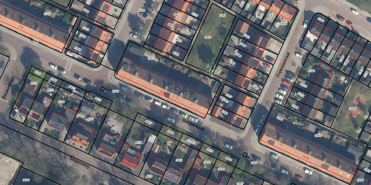 Beukenlaan 49 is gelegen op kadastraal perceel RZB00B3801. Deze kadastrale aanduiding is uniek en wordt gebruikt door het Kadaster om eigendomsrechten en andere zakelijke rechten vast te leggen. Het perceel maakt onderdeel uit van de kadastrale gemeente Rozenburg.