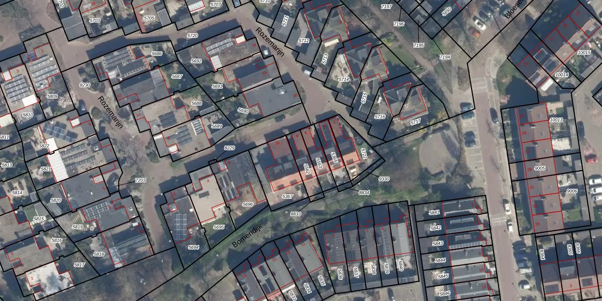 Bomendijk 8 is gelegen op kadastraal perceel RZB00B5562. Deze kadastrale aanduiding is uniek en wordt gebruikt door het Kadaster om eigendomsrechten en andere zakelijke rechten vast te leggen. Het perceel maakt onderdeel uit van de kadastrale gemeente Rozenburg.