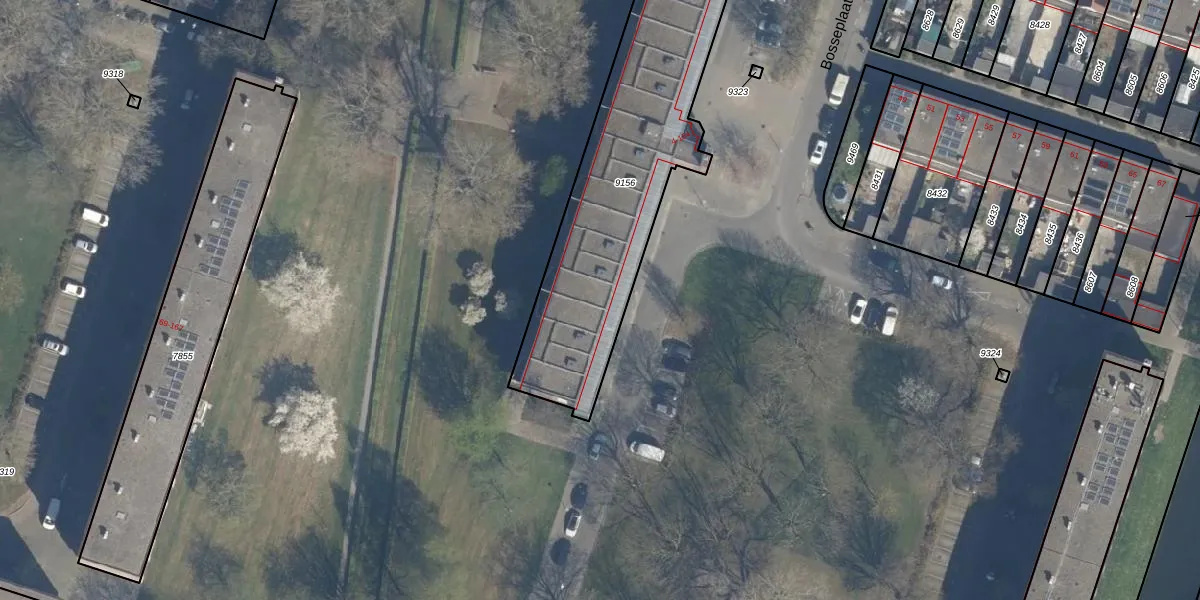 Het perceel waarop Bosseplaat 18 staat heeft een oppervlakte van 1960 m². Dit is een zeer groot perceel. De perceeloppervlakte wordt geregistreerd door het Kadaster. Gedetailleerde informatie over de maten van dit perceel kunt u vinden in het rapport Kadastrale kaart met maatvoering van Bosseplaat 18.