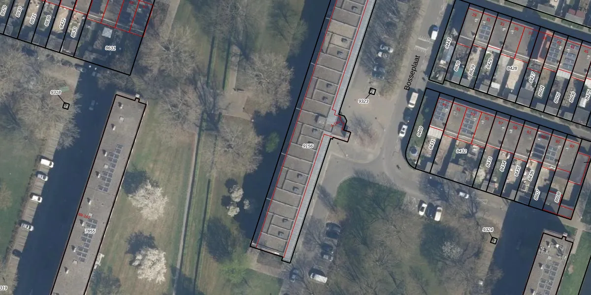 Het perceel waarop Bosseplaat 26 staat heeft een oppervlakte van 1960 m². Dit is een zeer groot perceel. De perceeloppervlakte wordt geregistreerd door het Kadaster. Gedetailleerde informatie over de maten van dit perceel kunt u vinden in het rapport Kadastrale kaart met maatvoering van Bosseplaat 26.