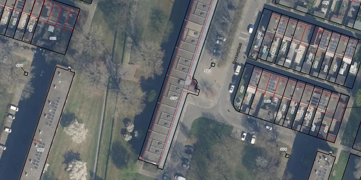 Het perceel waarop Bosseplaat 34 staat heeft een oppervlakte van 1960 m². Dit is een zeer groot perceel. De perceeloppervlakte wordt geregistreerd door het Kadaster. Gedetailleerde informatie over de maten van dit perceel kunt u vinden in het rapport Kadastrale kaart met maatvoering van Bosseplaat 34.