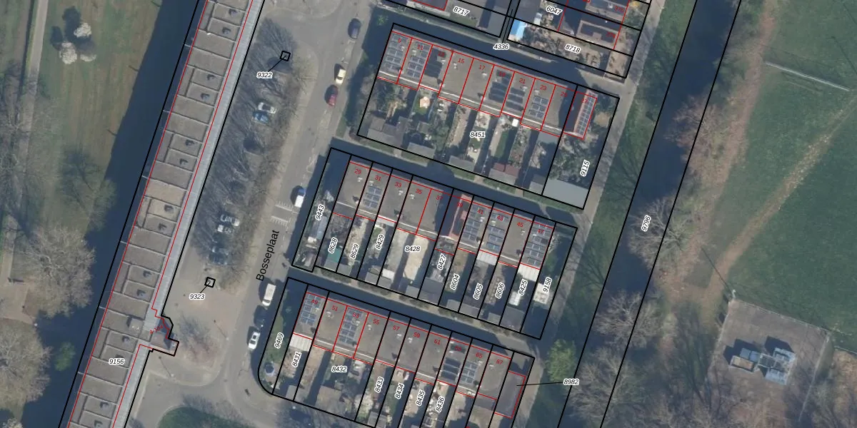 Het perceel waarop Bosseplaat 37 staat heeft een oppervlakte van 276 m². Dit is een middelgroot perceel. De perceeloppervlakte wordt geregistreerd door het Kadaster. Gedetailleerde informatie over de maten van dit perceel kunt u vinden in het rapport Kadastrale kaart met maatvoering van Bosseplaat 37.