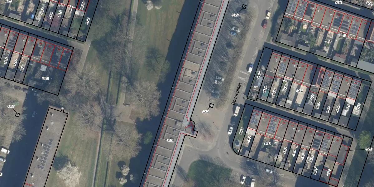 Bosseplaat 70 is gelegen op kadastraal perceel RZB00B9156. Deze kadastrale aanduiding is uniek en wordt gebruikt door het Kadaster om eigendomsrechten en andere zakelijke rechten vast te leggen. Het perceel maakt onderdeel uit van de kadastrale gemeente Rozenburg.