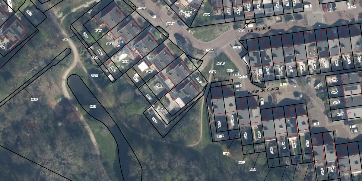 Gebruik de zoekbalk of klik op een perceel voor informatie over de adressen binnen dit perceel.