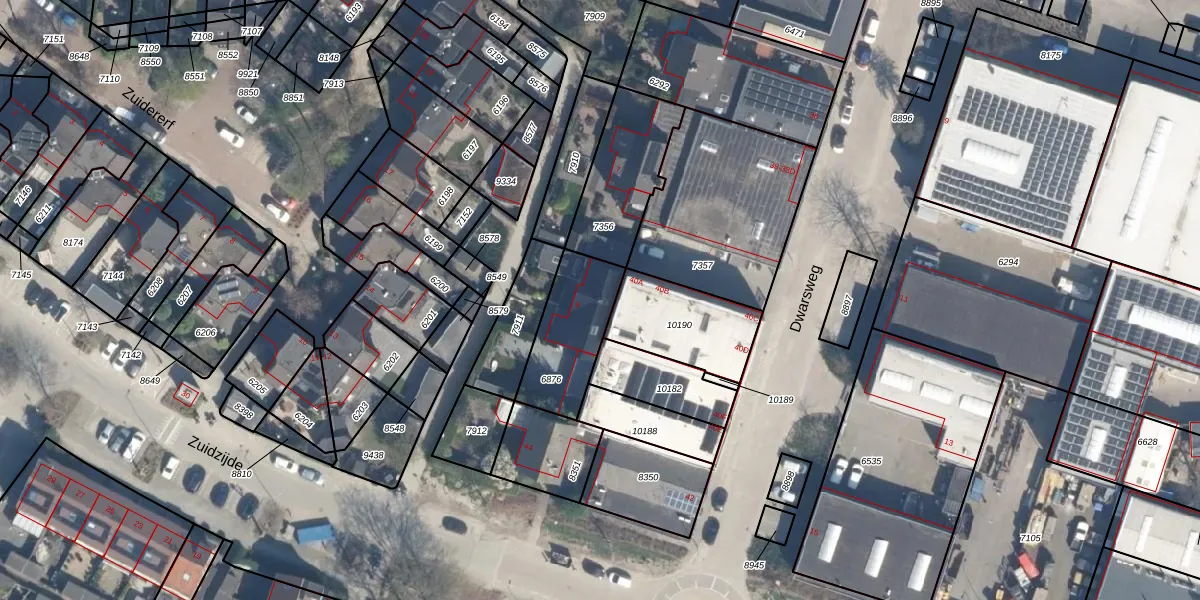 Het perceel waarop Dwarspad 9 staat heeft een oppervlakte van 294 m². Dit is een middelgroot perceel. De perceeloppervlakte wordt geregistreerd door het Kadaster. Gedetailleerde informatie over de maten van dit perceel kunt u vinden in het rapport Kadastrale kaart met maatvoering van Dwarspad 9.