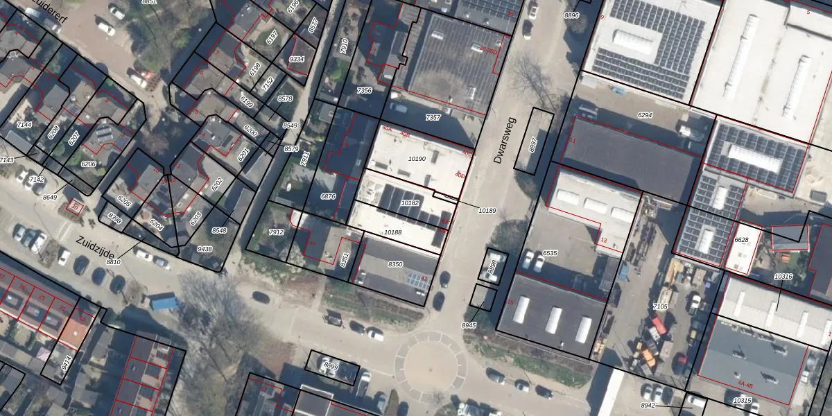 Dwarsweg 40-F is gelegen op kadastraal perceel RZB00B10182. Deze kadastrale aanduiding is uniek en wordt gebruikt door het Kadaster om eigendomsrechten en andere zakelijke rechten vast te leggen. Het perceel maakt onderdeel uit van de kadastrale gemeente Rozenburg.
