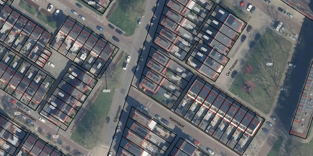 Gebruik de zoekbalk of klik op een perceel voor informatie over de adressen binnen dit perceel.