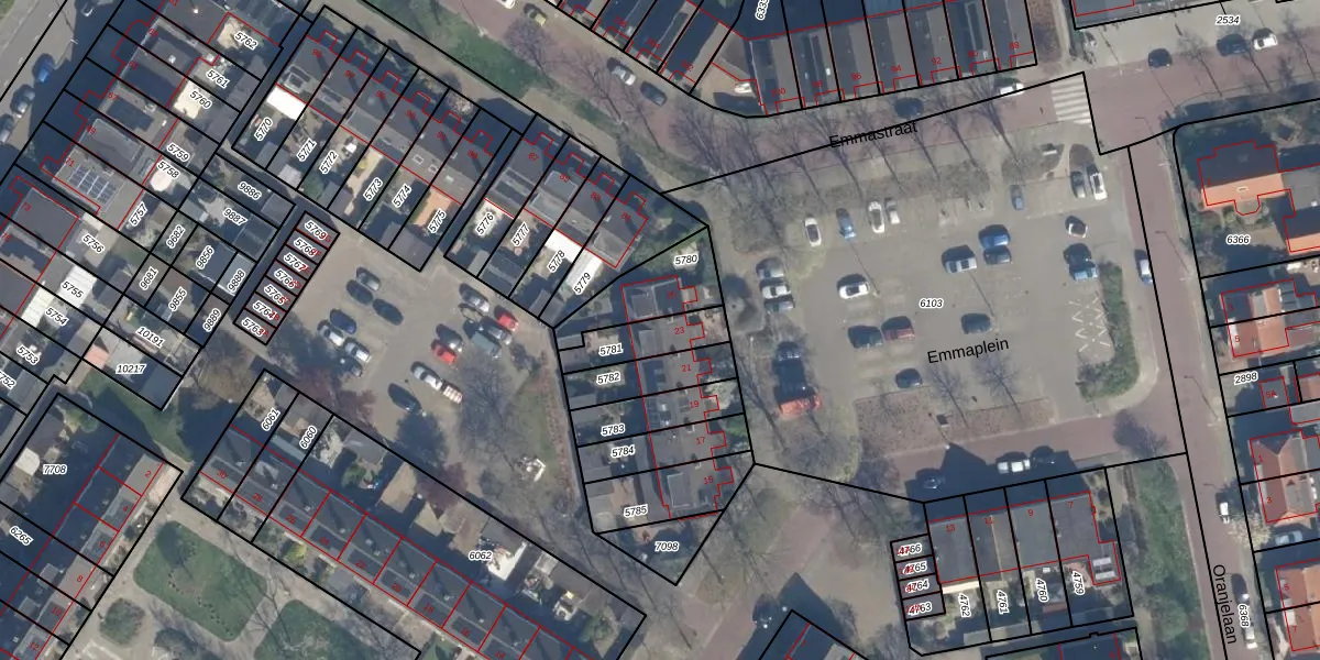 Emmaplein 23 is gelegen op kadastraal perceel RZB00B5781. Deze kadastrale aanduiding is uniek en wordt gebruikt door het Kadaster om eigendomsrechten en andere zakelijke rechten vast te leggen. Het perceel maakt onderdeel uit van de kadastrale gemeente Rozenburg.