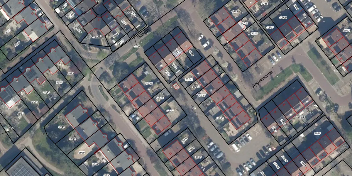 Gebruik de zoekbalk of klik op een perceel voor informatie over de adressen binnen dit perceel.