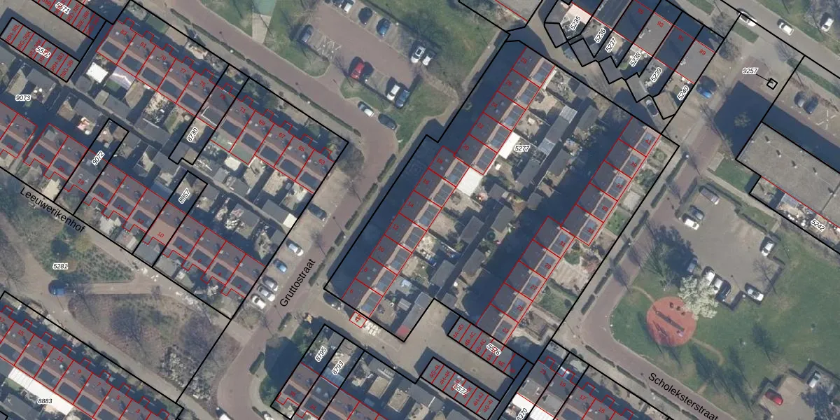Het perceel waarop Gruttostraat 14 staat heeft een oppervlakte van 3404 m². Dit is een zeer groot perceel. De perceeloppervlakte wordt geregistreerd door het Kadaster. Gedetailleerde informatie over de maten van dit perceel kunt u vinden in het rapport Kadastrale kaart met maatvoering van Gruttostraat 14.