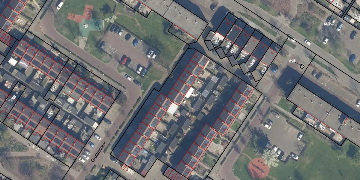 Het perceel waarop Gruttostraat 22 staat heeft een oppervlakte van 3404 m². Dit is een zeer groot perceel. De perceeloppervlakte wordt geregistreerd door het Kadaster. Gedetailleerde informatie over de maten van dit perceel kunt u vinden in het rapport Kadastrale kaart met maatvoering van Gruttostraat 22.