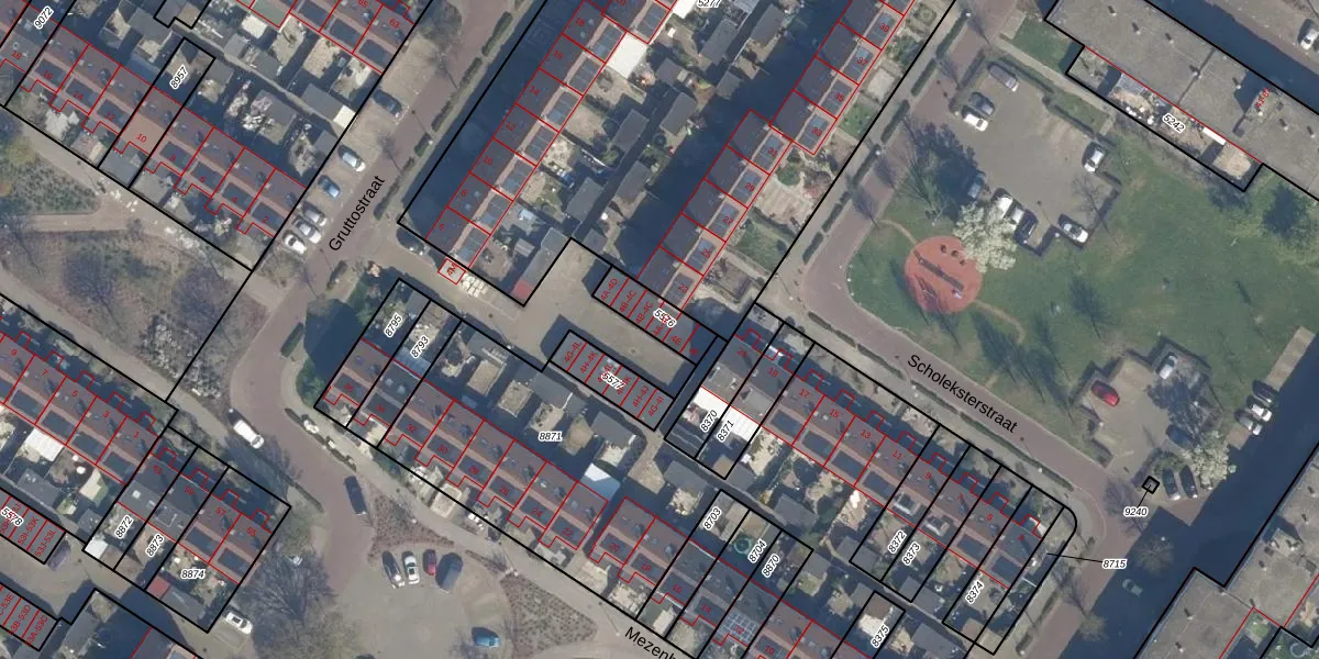 Gruttostraat 4-D is gelegen op kadastraal perceel RZB00B5576. Deze kadastrale aanduiding is uniek en wordt gebruikt door het Kadaster om eigendomsrechten en andere zakelijke rechten vast te leggen. Het perceel maakt onderdeel uit van de kadastrale gemeente Rozenburg.
