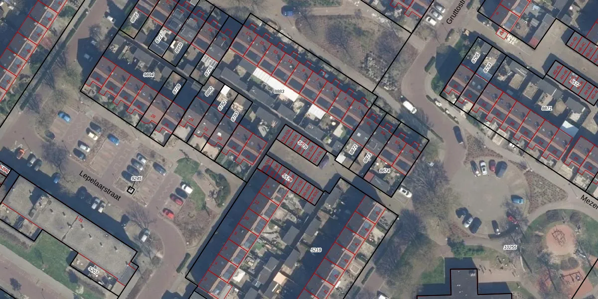 Het perceel waarop Gruttostraat 53-J staat heeft een oppervlakte van 95 m². Dit is een klein perceel. De perceeloppervlakte wordt geregistreerd door het Kadaster. Gedetailleerde informatie over de maten van dit perceel kunt u vinden in het rapport Kadastrale kaart met maatvoering van Gruttostraat 53-J.