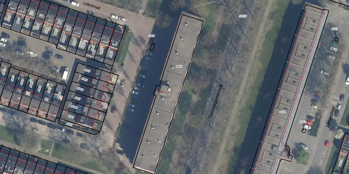 Het perceel waarop Lekstraat 39 staat heeft een oppervlakte van 1205 m². Dit is een zeer groot perceel. De perceeloppervlakte wordt geregistreerd door het Kadaster. Gedetailleerde informatie over de maten van dit perceel kunt u vinden in het rapport Kadastrale kaart met maatvoering van Lekstraat 39.