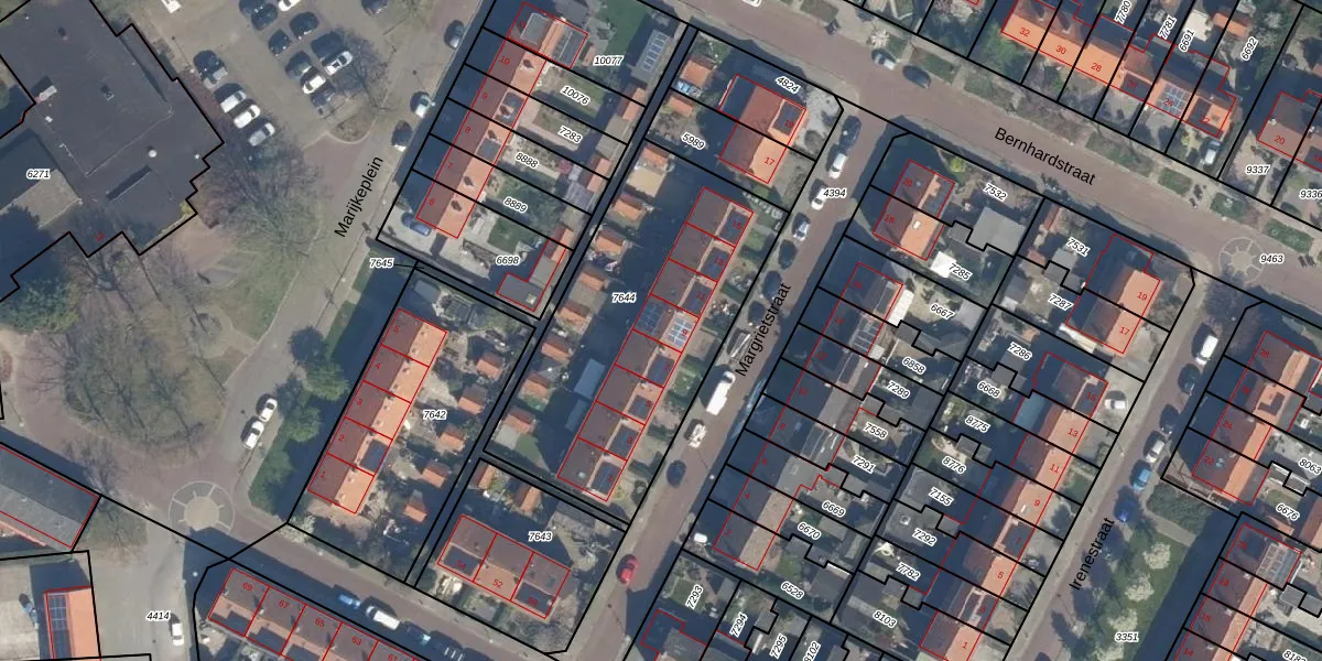 Margrietstraat 9 is gelegen op kadastraal perceel RZB00B7644. Deze kadastrale aanduiding is uniek en wordt gebruikt door het Kadaster om eigendomsrechten en andere zakelijke rechten vast te leggen. Het perceel maakt onderdeel uit van de kadastrale gemeente Rozenburg.