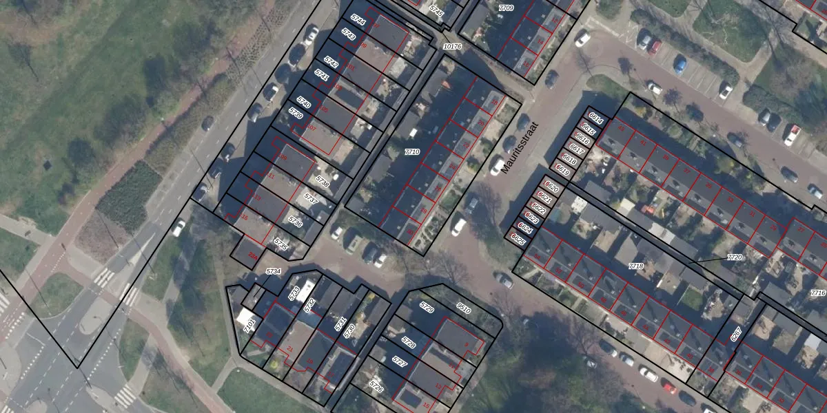Het perceel waarop Mauritsstraat 28 staat heeft een oppervlakte van 985 m². Dit is een groot perceel. De perceeloppervlakte wordt geregistreerd door het Kadaster. Gedetailleerde informatie over de maten van dit perceel kunt u vinden in het rapport Kadastrale kaart met maatvoering van Mauritsstraat 28.