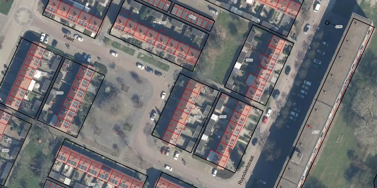 Palet 29 is gelegen op kadastraal perceel RZB00B7666. Deze kadastrale aanduiding is uniek en wordt gebruikt door het Kadaster om eigendomsrechten en andere zakelijke rechten vast te leggen. Het perceel maakt onderdeel uit van de kadastrale gemeente Rozenburg.
