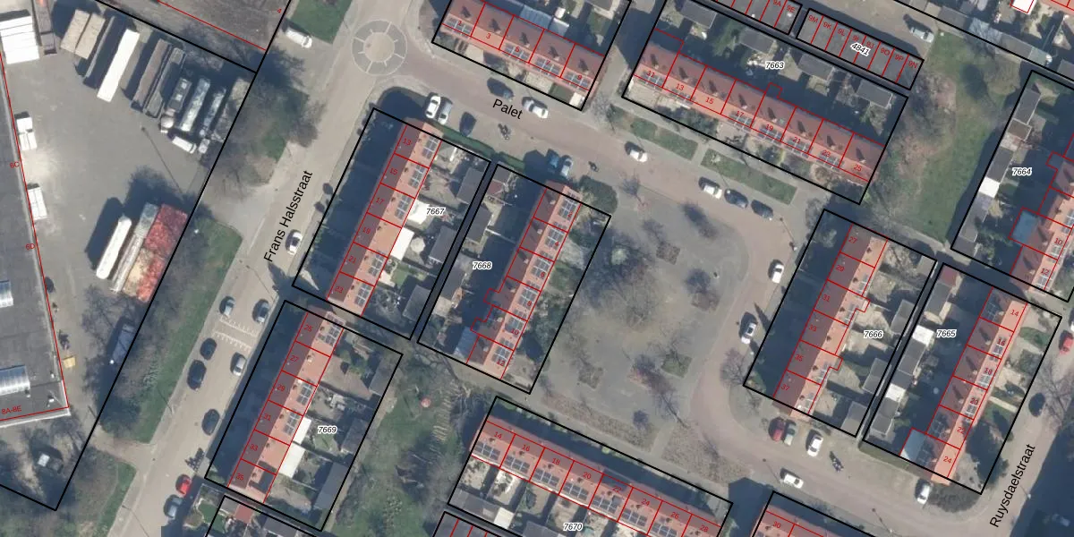 Het perceel waarop Palet 6 staat heeft een oppervlakte van 837 m². Dit is een groot perceel. De perceeloppervlakte wordt geregistreerd door het Kadaster. Gedetailleerde informatie over de maten van dit perceel kunt u vinden in het rapport Kadastrale kaart met maatvoering van Palet 6.