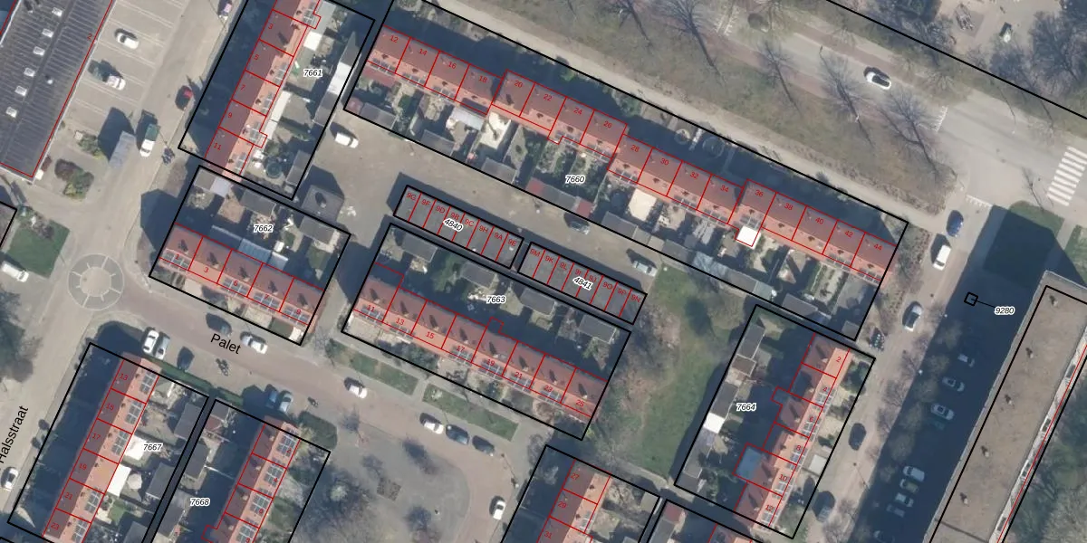 Het perceel waarop Palet 9-K staat heeft een oppervlakte van 141 m². Dit is een middelgroot perceel. De perceeloppervlakte wordt geregistreerd door het Kadaster. Gedetailleerde informatie over de maten van dit perceel kunt u vinden in het rapport Kadastrale kaart met maatvoering van Palet 9-K.